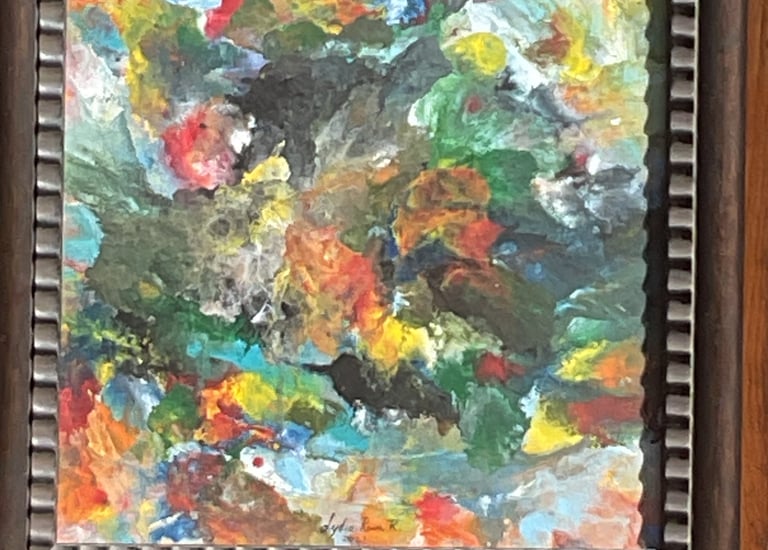 An energetic abstract piece that evokes movement and rhythm.
